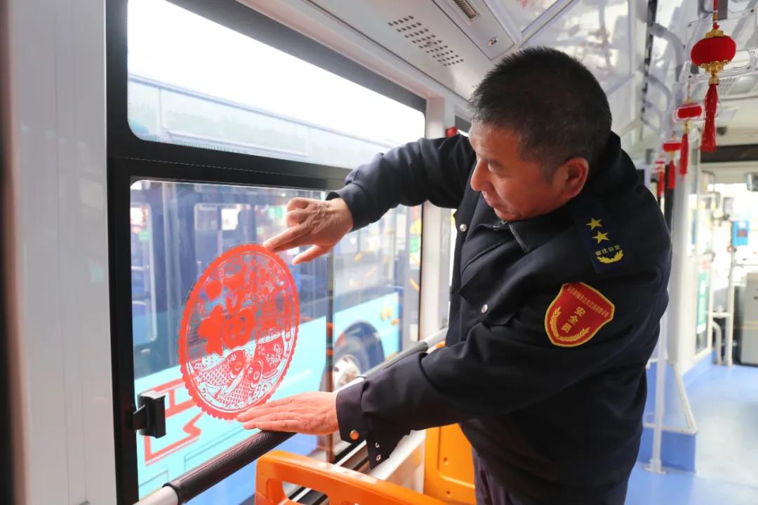 “這個(gè)燈籠再掛高一點(diǎn),大紅燈籠高高掛才好”“這個(gè)窗花真漂亮,往車窗上一貼立馬喜慶了不少”“虎年接續(xù)奮斗,看我虎虎生威”......小年剛過,新車駕駛員們立即忙活起來,盛裝打扮自己的“公交兄弟”,貼窗花、懸燈籠、掛福袋有條不紊,每位駕駛員都盡心盡力把自己的車輛裝扮到最美,讓市民一上車就能感受到節(jié)日的溫暖。
