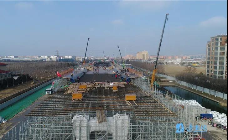 “北京路快速化改造工程在虎年春節(jié)期間連續(xù)施工,千人堅守崗位。其中1標段約400余人,主要實施主線高架橋作業(yè),十聯(lián)現(xiàn)澆箱梁同步進行支架搭設(shè)、模板安裝等工序。春節(jié)期間,完成6聯(lián)連續(xù)梁支架搭設(shè)、4聯(lián)橋梁模板安裝、5個墩柱混凝土施工和古黃河橋下部結(jié)構(gòu)系梁施工等工序,奮力奪取‘開門紅’,為今年主線高架橋貫通打下了堅實基礎(chǔ)。”北京路快速化改造工程1標段項目總工程師王宇介紹,目前計劃橋梁工程再增300余人,路基工程增200余人,保證施工進度。