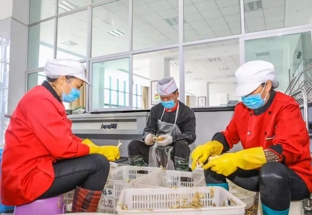 “今天是元宵節(jié),我煮了黑芝麻、花生、香芋餡料的湯圓,大家多吃點,就像在自己家里一樣”。午飯時分,廚師長陳啟東熱情地給大家盛湯圓。不一會兒功夫,滿滿兩大鍋的湯圓連湯帶水全部見底。