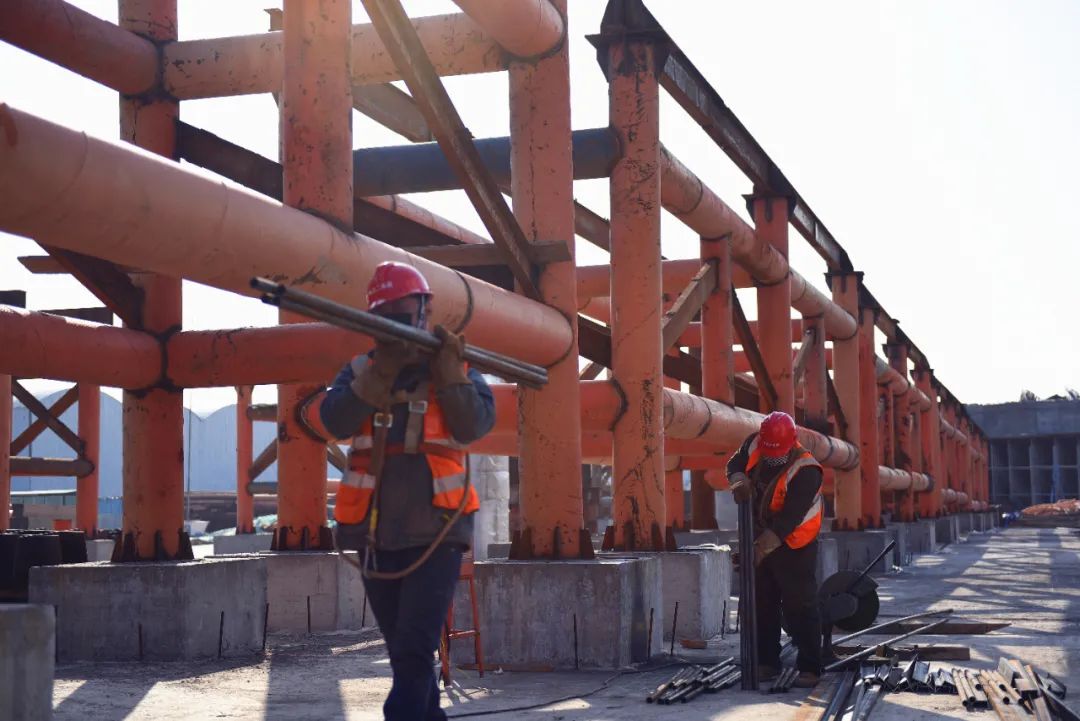 2月21日,天氣晴朗,北京路快速化改造工程跨京杭運(yùn)河特大橋施工現(xiàn)場(chǎng)機(jī)械轟鳴,一線建設(shè)者“虎”力全開,5臺(tái)吊車、1臺(tái)浮吊船互相配合,有序進(jìn)行大橋頂推臨時(shí)支架體系搭設(shè)工作。