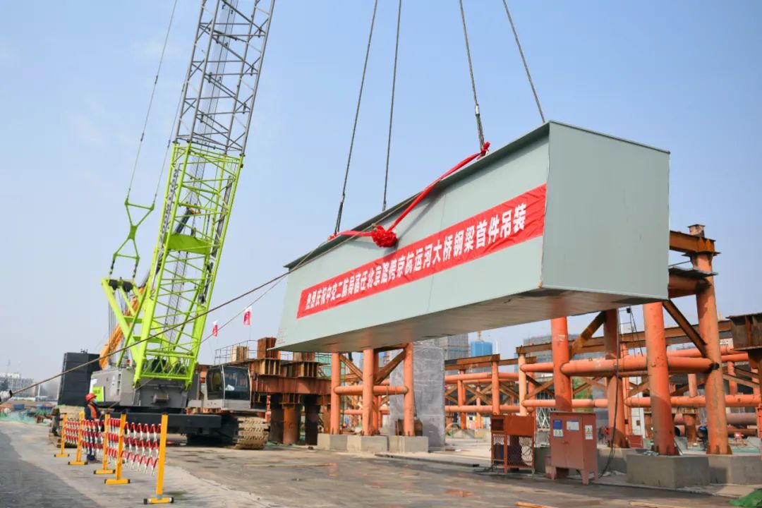 【高鐵公司】北京路快速化改造工程跨京杭運(yùn)河特大橋首節(jié)鋼梁順利吊裝