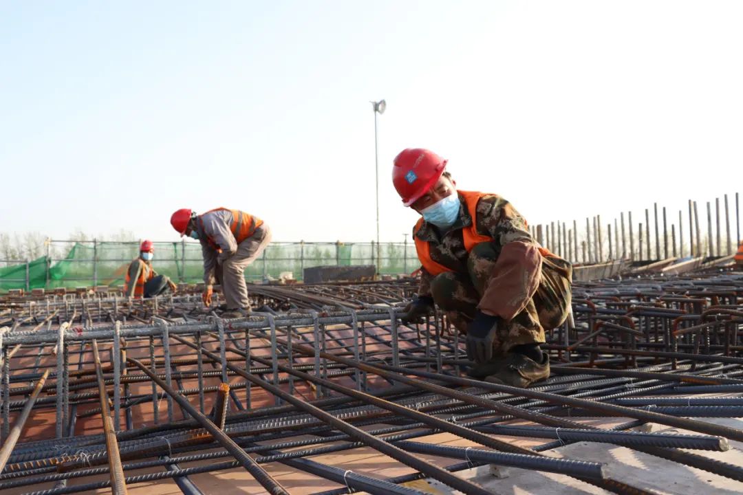 4月8日,宿遷市北京路快速化改造工程現(xiàn)場施工人員正在有條不紊地綁扎鋼筋、焊接、沖洗、安裝……復(fù)工生產(chǎn)平穩(wěn)有序推進(jìn)。