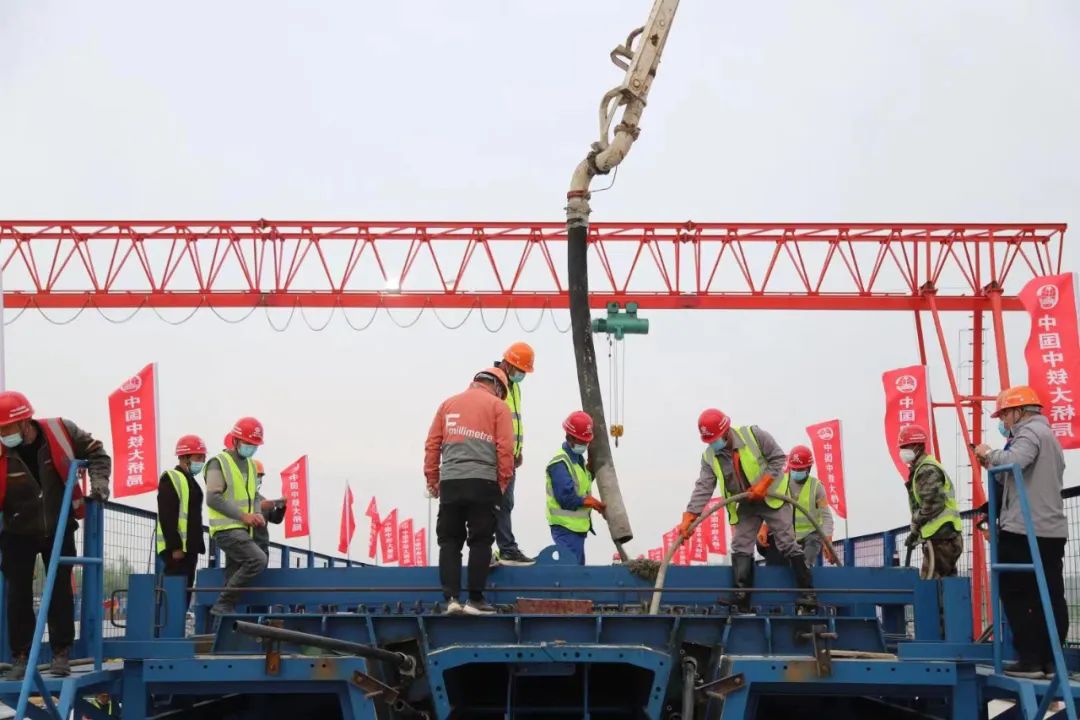 為確保首片預(yù)制箱梁澆筑安全有序,高鐵公司組織項(xiàng)目部統(tǒng)籌安排、科學(xué)規(guī)劃,安排監(jiān)理、技術(shù)人員對(duì)預(yù)制箱梁工藝交流學(xué)習(xí);不斷細(xì)化施工方案,開展安全技術(shù)交底,要求試驗(yàn)人員對(duì)混凝土合格做最后確認(rèn)。在箱梁澆筑過程中,技術(shù)人員全程監(jiān)督指導(dǎo),歷經(jīng)兩個(gè)半小時(shí),順利完成了首片預(yù)制箱梁澆筑工作。