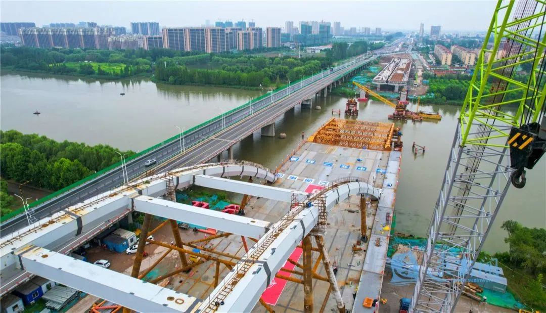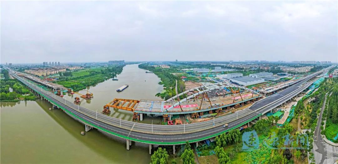 7月29日,宿遷市北京路快速化改造工程跨京杭運(yùn)河特大橋開(kāi)始第二輪頂推施工。