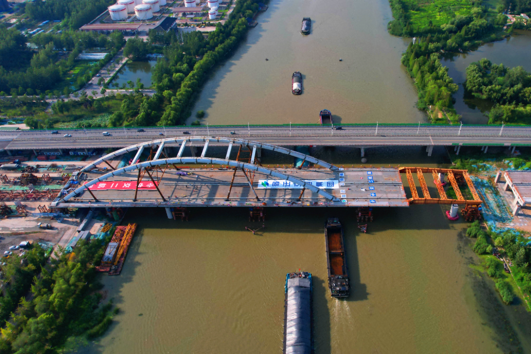 【高鐵公司】北京路快速化改造工程跨京杭運(yùn)河特大橋完成二次頂推