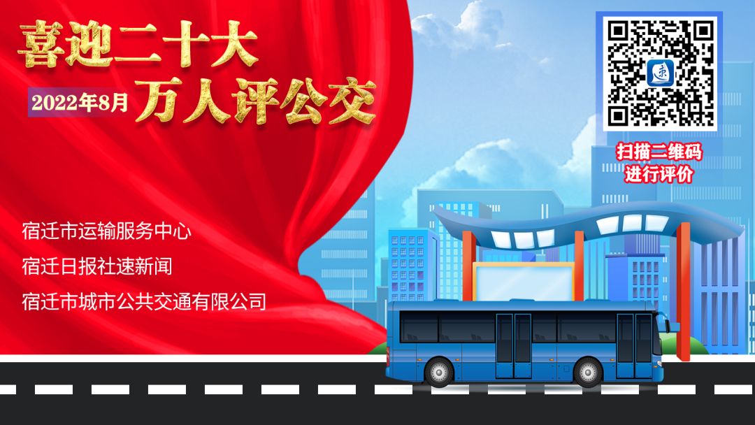 為繼續(xù)以公交新變化應(yīng)對市民新需求、以服務(wù)新提升惠及群眾大民生,讓每一位生活在宿遷的市民可以共享城市發(fā)展的便捷,讓每一位來到宿遷的游客可以深刻感受到公交服務(wù)的周到與人性化,8月1日,宿遷市運輸服務(wù)中心、宿遷日報社速新聞、宿遷市城市公共交通有限公司特聯(lián)合開展“喜迎二十大 萬人評公交”活動,邀請廣大市民對宿遷城市公交運營情況作出客觀評價、提出寶貴意見和建議。