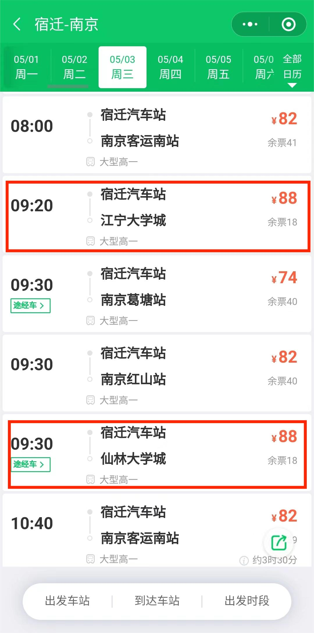 不必?fù)?dān)心!為方便宿遷學(xué)子假期返校,5月3日,宿遷汽車客運(yùn)站推出直達(dá)南京仙林大學(xué)城、江寧大學(xué)城兩條班線,同學(xué)們可以直接享受從家到大學(xué)城的一站式體驗(yàn),也可以選擇赴客運(yùn)站乘坐,免去中途換乘煩惱,實(shí)現(xiàn)家到學(xué)校的“一車直達(dá)”!