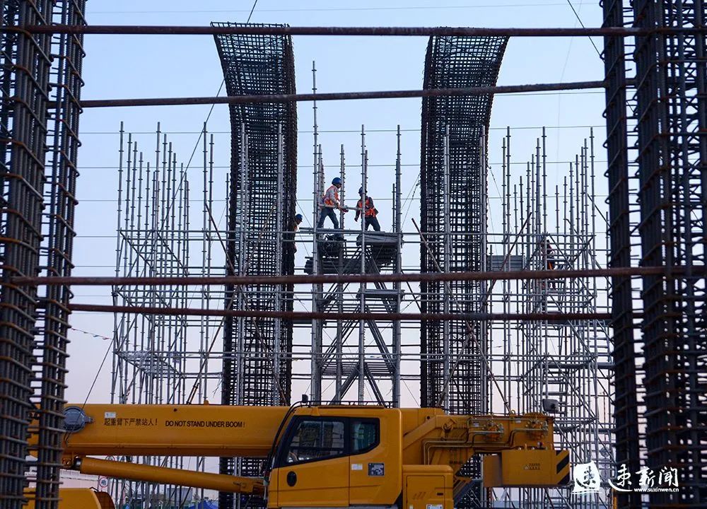 11月6日,在宿遷市張家港大道一期快速化改造工程現(xiàn)場(chǎng),工人們正在緊張施工。