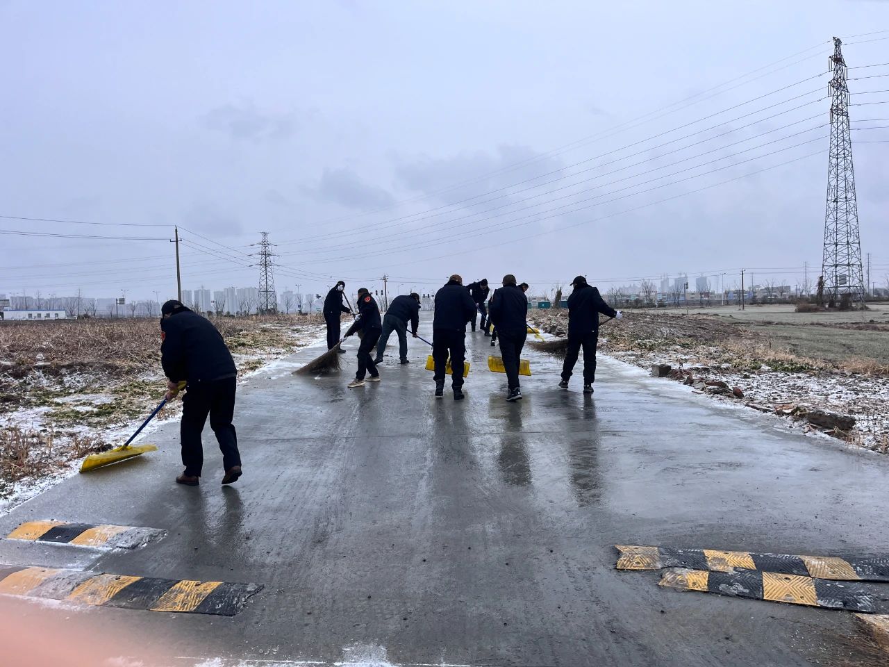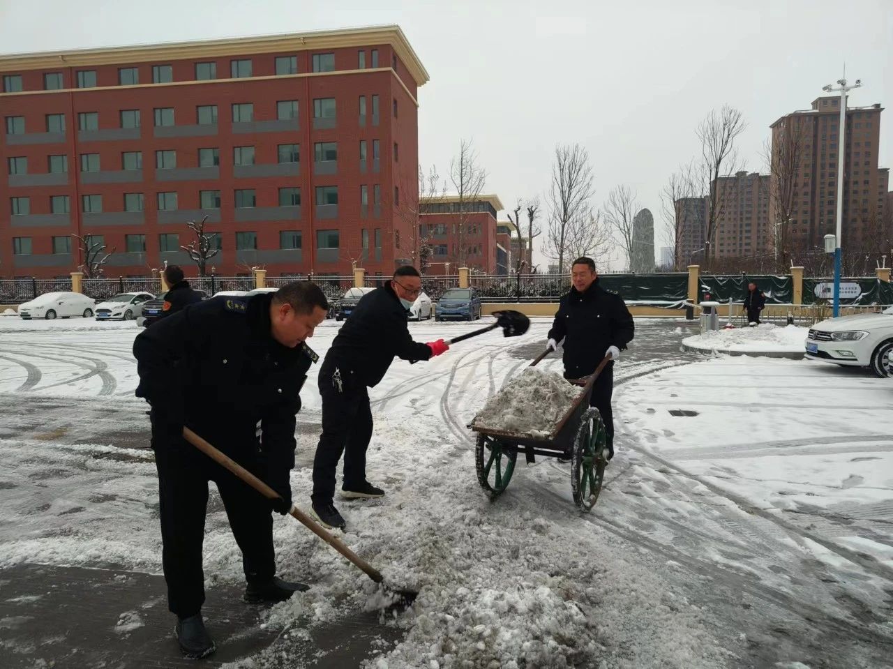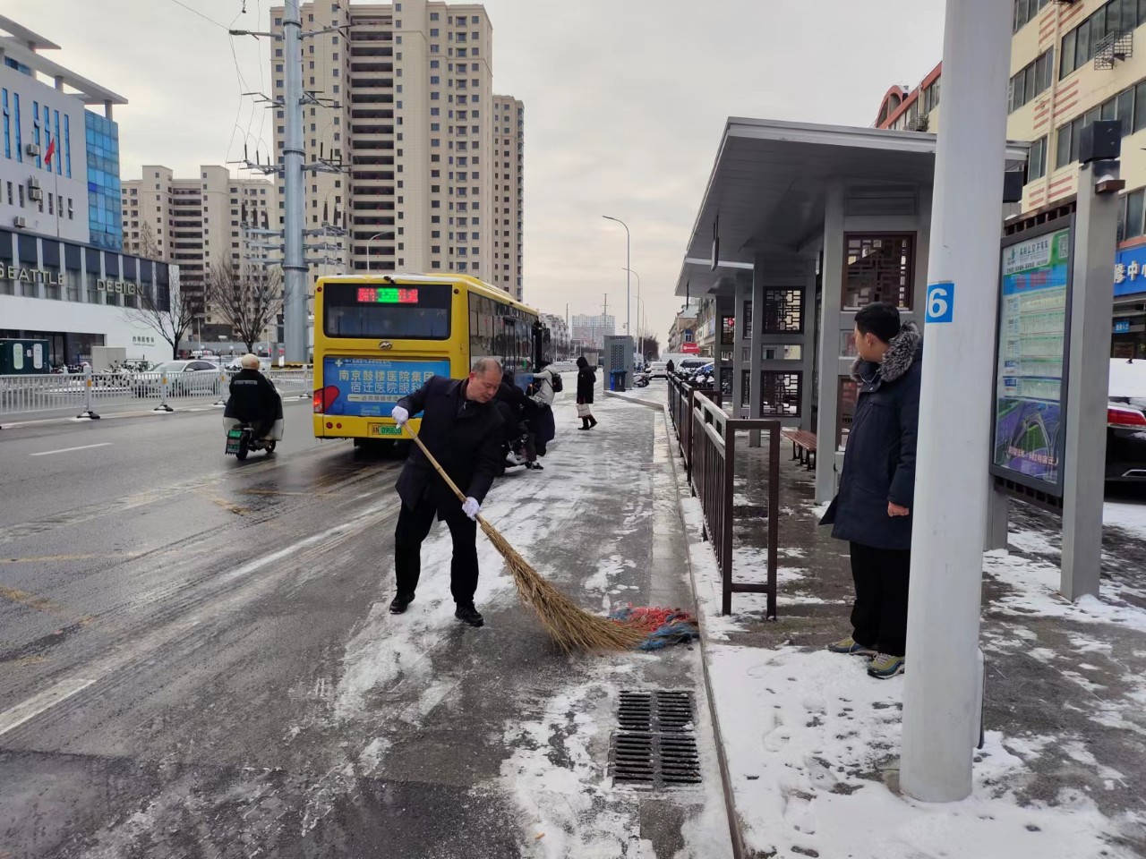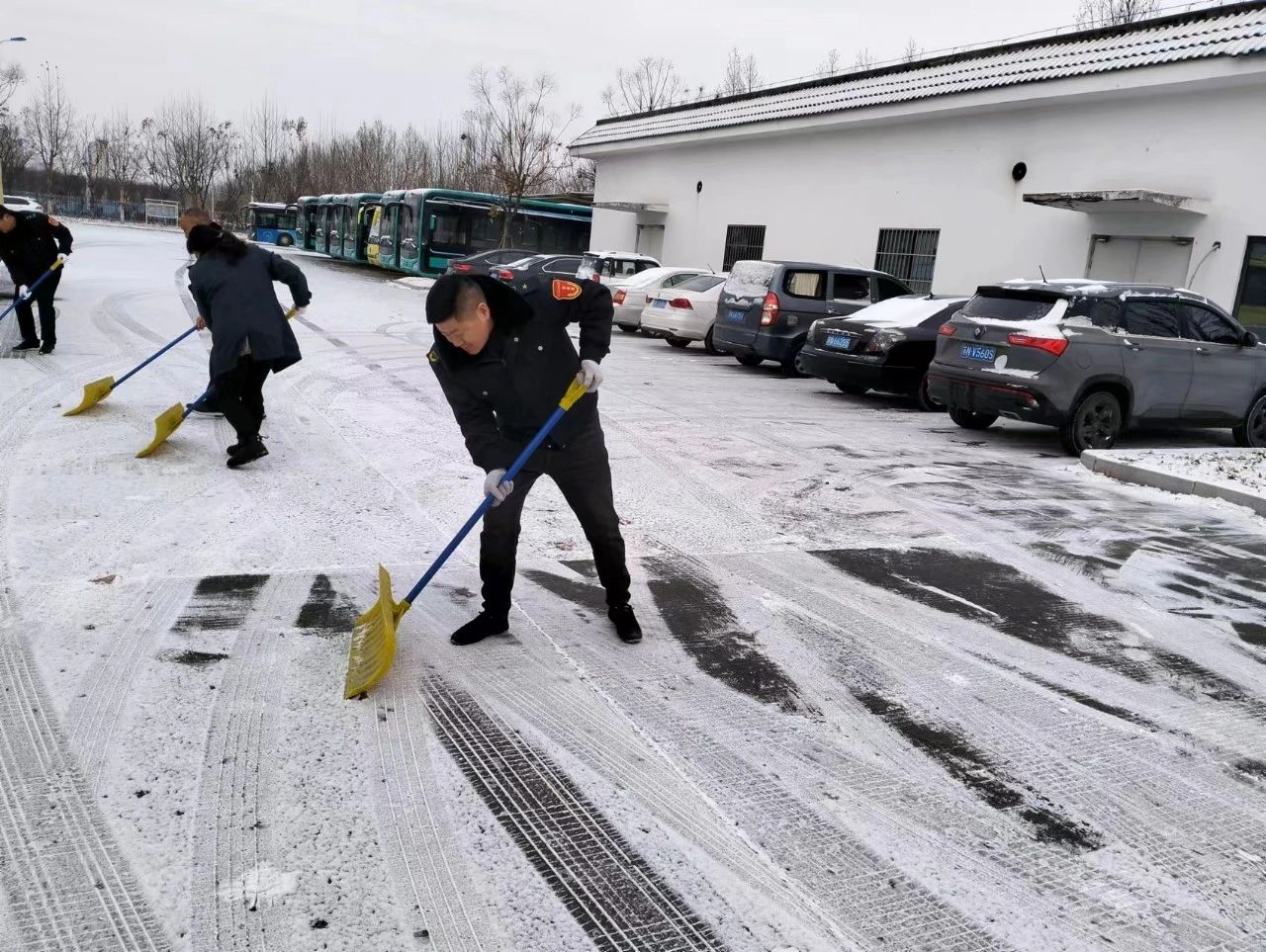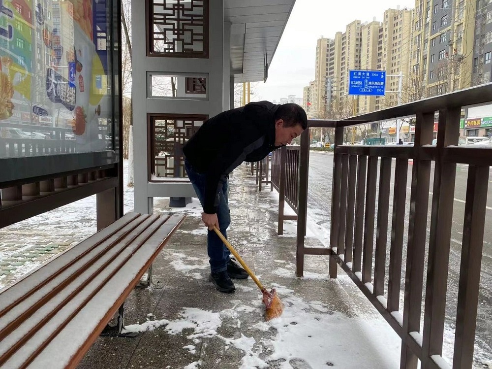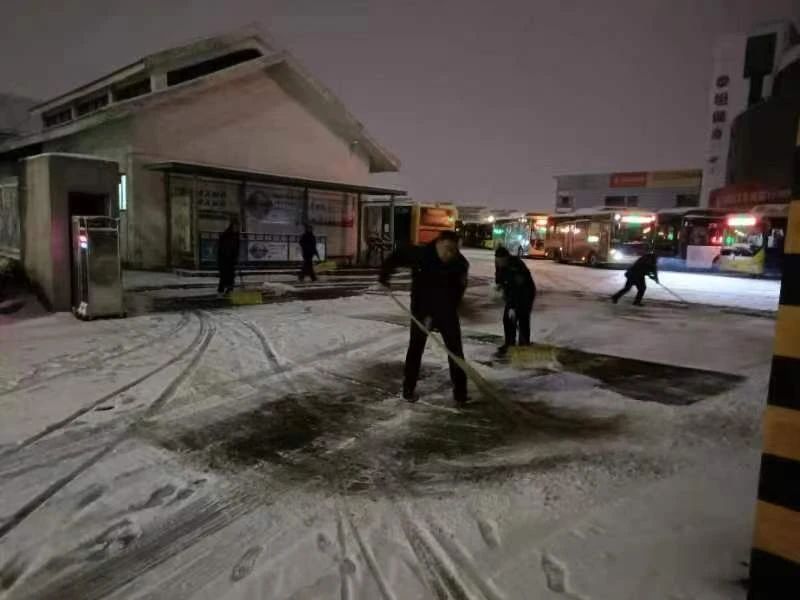 各公交調度站積極響應職工掃雪除冰、熱火朝天用行動融化冰雪保障車輛正常進出