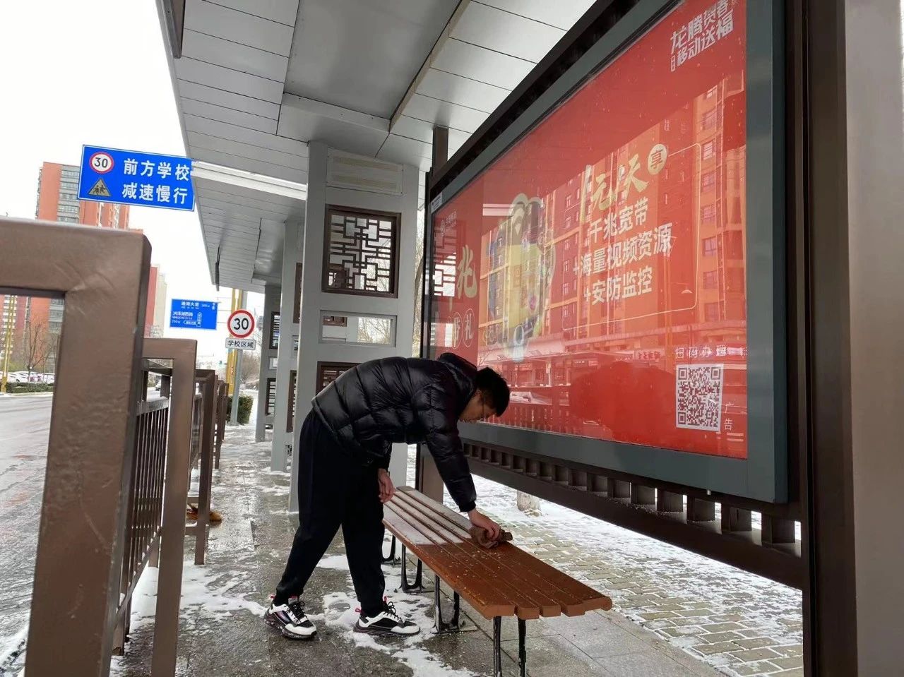 風雪裝點著美麗的宿遷銀裝素裹中閃動著公交人默默奉獻的身影構成一道靚麗的風景線在這個寒冷的冬日里用堅守和擔當融化冰雪溫暖市民出行路