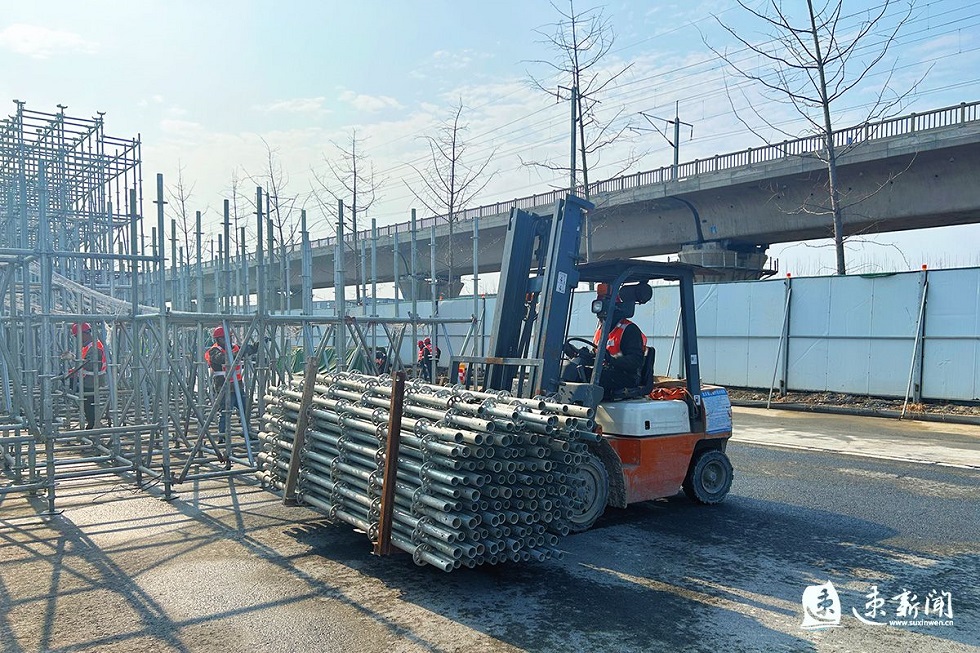 “我們工人大部分是外地的,目前已陸續(xù)返崗復(fù)工。”宿遷市港城路上跨鐵路專(zhuān)用線橋梁工程施工單位現(xiàn)場(chǎng)負(fù)責(zé)人介紹,今天上午六點(diǎn)多就開(kāi)工了,大家齊心協(xié)力、分工協(xié)作,正在同步開(kāi)展現(xiàn)澆箱梁預(yù)應(yīng)力張拉和支架搭設(shè)。