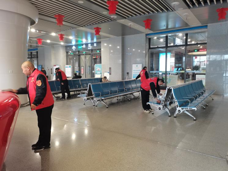 與此同時,在高鐵公交樞紐站,身穿紅色馬甲的志愿者們分工明確、不停忙碌,有的負責維護現(xiàn)場秩序,有的則熱心導乘、幫扶老弱。待人潮散去后,他們又一起將候車區(qū)座椅擦拭干凈。他們的用心服務得到了來往乘客的一致稱贊,在志愿服務站穿梭的“志愿紅”成為一道亮麗的風景線。