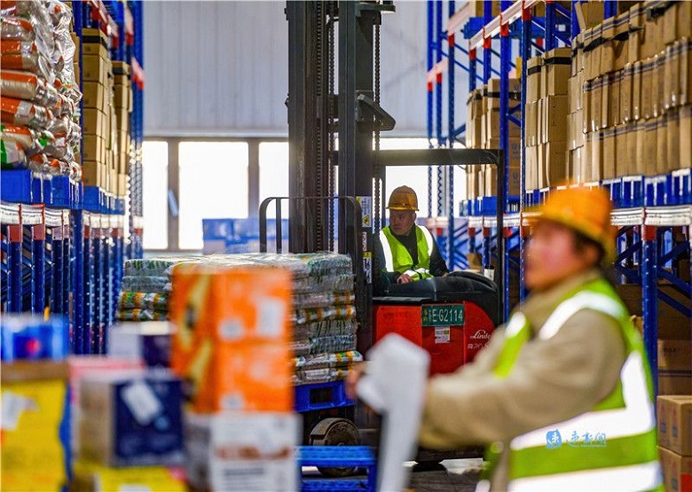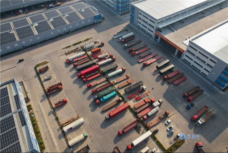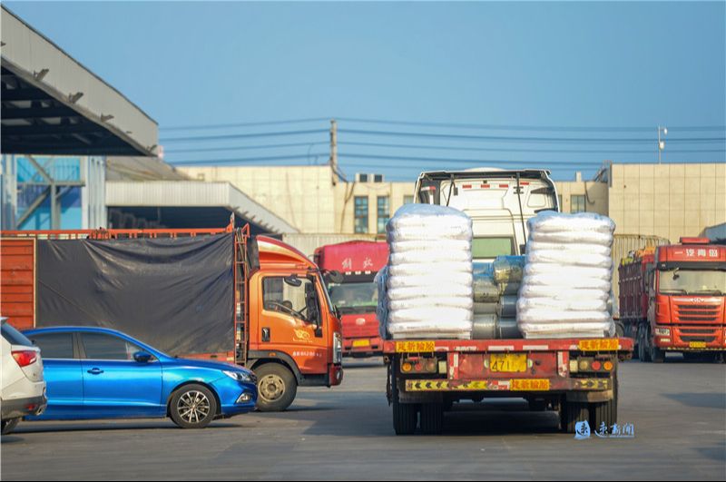 近日,宿遷經(jīng)開區(qū)江蘇通湖物流園內(nèi),工作人員正在有序作業(yè),運輸車輛來回穿梭,一派繁忙景象。