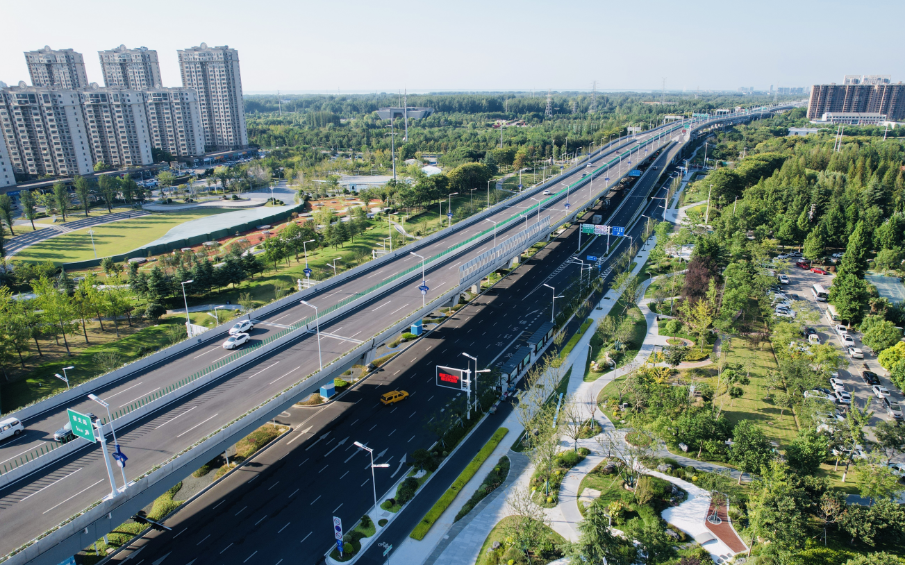 此次高鐵公司獲獎(jiǎng)的“城市預(yù)制裝配式橋梁高性能結(jié)構(gòu)體系與快速建造技術(shù)研究”主要應(yīng)用于宿遷市迎賓大道二期快速化改造工程,預(yù)制裝配率達(dá)到85.4%,成為江蘇省首個(gè)全裝配式城市快速路改造項(xiàng)目。實(shí)施預(yù)制裝配、智能建造不僅實(shí)現(xiàn)了結(jié)構(gòu)輕量化、設(shè)計(jì)集約化、拼裝高效化、連接長(zhǎng)效化、管控智能化,而且能夠滿足城市密集區(qū)高架橋建設(shè)對(duì)環(huán)境干擾少、施工工期短、耐久性能好、安全韌性強(qiáng)的總體要求。經(jīng)中國(guó)交通運(yùn)輸協(xié)會(huì)組織專家委員會(huì)鑒定,該成果總體上達(dá)到國(guó)際領(lǐng)先水平,經(jīng)濟(jì)社會(huì)效益顯著,推廣應(yīng)用前景廣闊。迎賓大道二期快速化改造工程作為宿遷市快速路網(wǎng)“二環(huán)十射”的重要組成部分,項(xiàng)目建成通車后,極大緩解了中心城區(qū)的交通壓力,增強(qiáng)了中心城市集聚和輻射功能,在2023年度市政府100個(gè)民生實(shí)事項(xiàng)目中獲得好評(píng)率99.5%,位列第二。