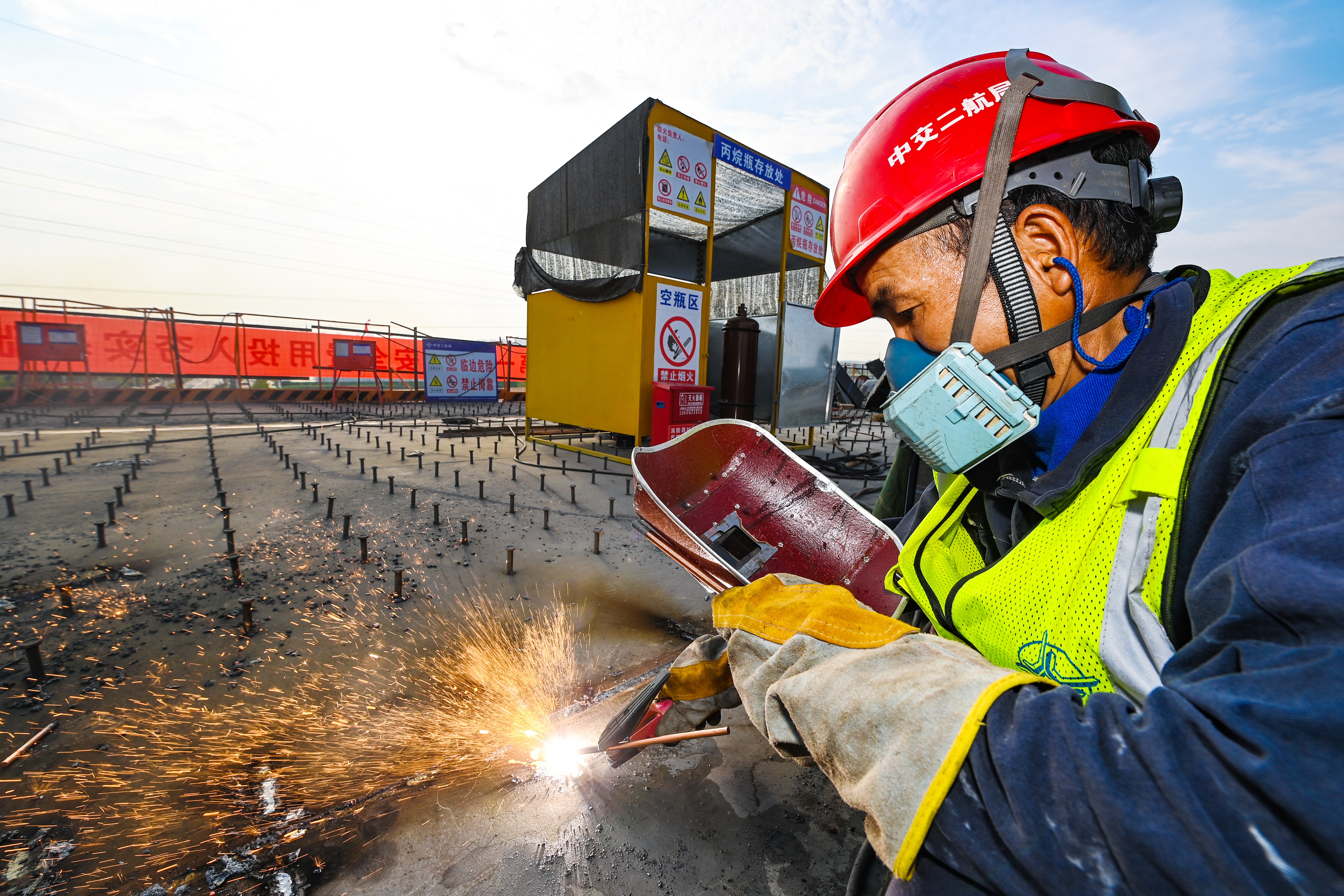 酒都路快速化改造工程施工2標(biāo)段鋼結(jié)構(gòu)焊接工作的一線工人吳小敏左手拿著面罩,右手拿著電焊槍,隨著“吱吱”的聲音響起,現(xiàn)場(chǎng)火花飛濺。汗水順著安全帽檐緩慢滴落,他早已習(xí)以為常,甩一甩頭,繼續(xù)作業(yè)。