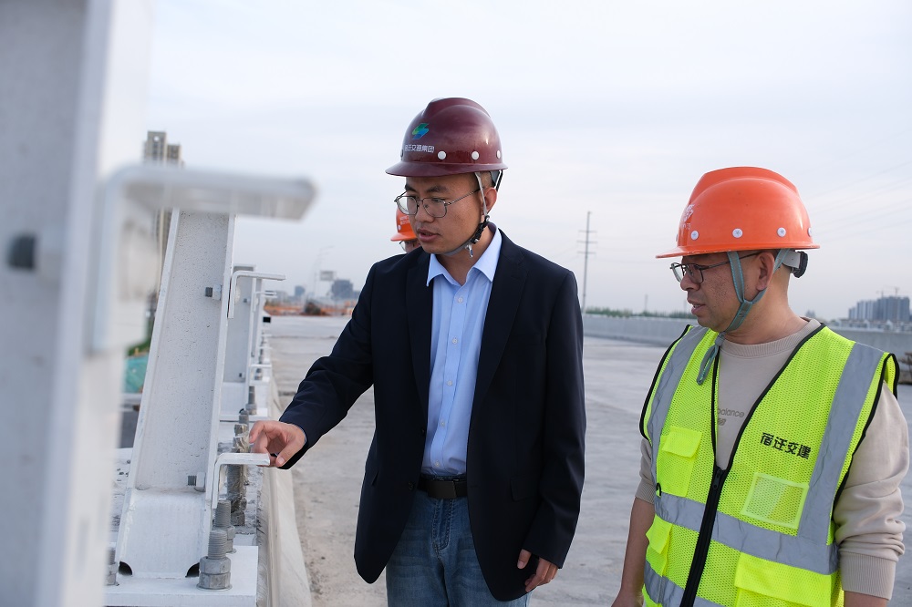 港城路上跨鐵路專用線橋梁工程是運河宿遷港產(chǎn)業(yè)園骨架路網(wǎng)中的“三橫”之一,東西貫穿園區(qū),是貨物通過港區(qū)企業(yè)產(chǎn)品走向全國各地乃至全球的紐帶。司漢認為,道路工程事關(guān)全市經(jīng)濟社會發(fā)展,早一天完工,城市發(fā)展的腳步便會快上一天,這是他們的職責,即便節(jié)假日也不例外。